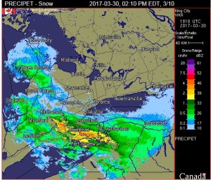 As you can see from the screen shot I took on the Canadian gov weather site, quite the system is approaching. That radar picture reminds me of Pac Man or better yet, that same March lion with it’s mouth wide open, about to take a bite out of Ontario.