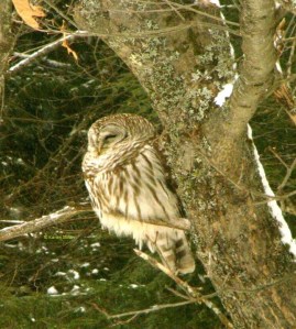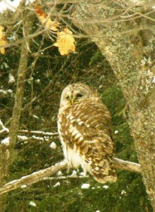 A barred owl! Last year I was out riding my horse in the forest and came across a woman who was ecstatic about having seen and photographed a barred owl. She knew he was in a particular place in the forest but had never been able to see him or take a photo. She said she usually came with other bird watchers but on this day had come on her own. I am happy to see your photo.