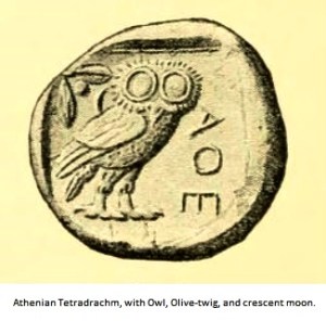 connection with that particular literary work, and her affinity with owls, this bird is often referred to as the “owl of Athena”.