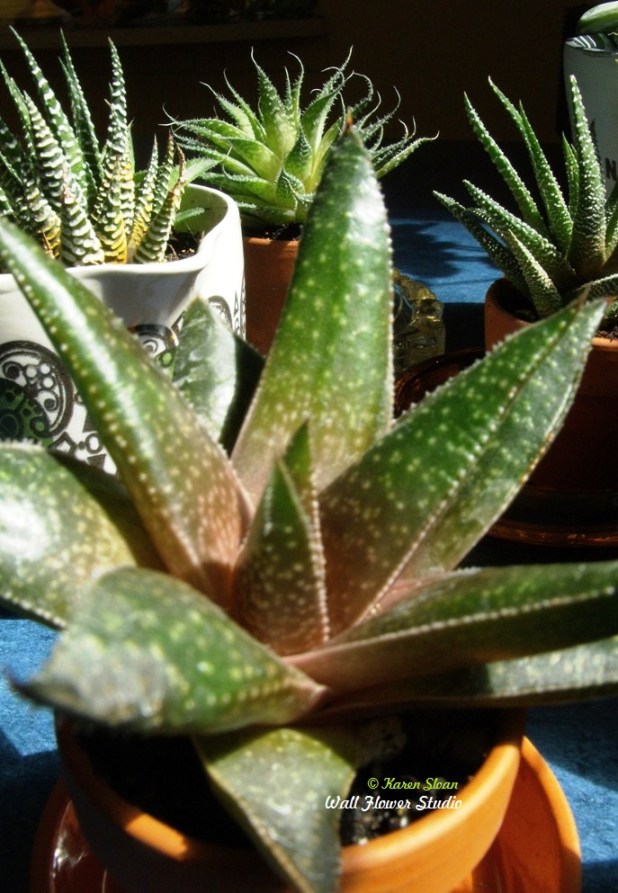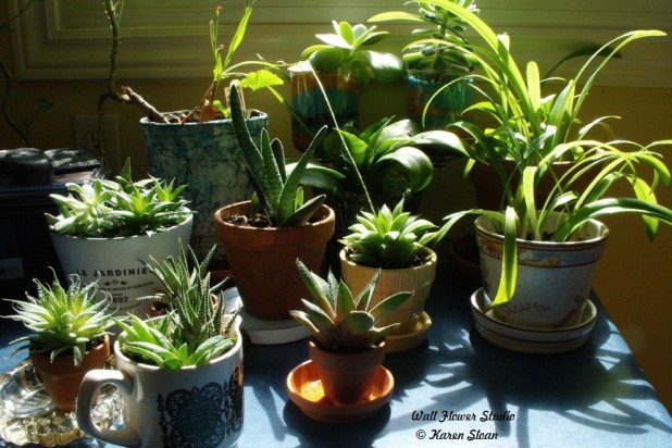 Tropical plants love the heat and humidity. All of my houseplants go outside for the summer, with the added benefit of making my house seem a lot more spacious during the growing season! Some don’t like too much sun, and there is a downside… when I bring them back in, once again I have to determine who gets the best sunny spots for the winter, (as there’s only so much window space), make sure there are no pests clinging about, (yuck), and our house seems once again, a little less spacious! But that’s okay!