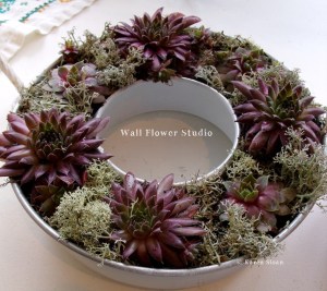 I like to use unusual containers, for example a bunt pan, which can go on the patio table with the big umbrella right through the hole in the middle. It’s a great way to save space! These can be picked up cheap at most second hand stores! Violets in spring would look nice in them, too.