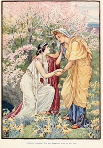 Demeter rejoiced, for her daughter was by her side. Illustration by Walter Crane – (1914) – Public Domain